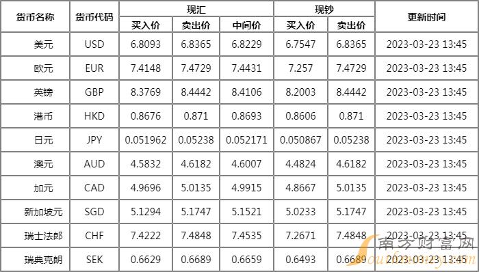 华夏银行外汇牌价一览 3月23日华夏银行人民币美元汇率多少?下面同南方财富网三江君来看看。