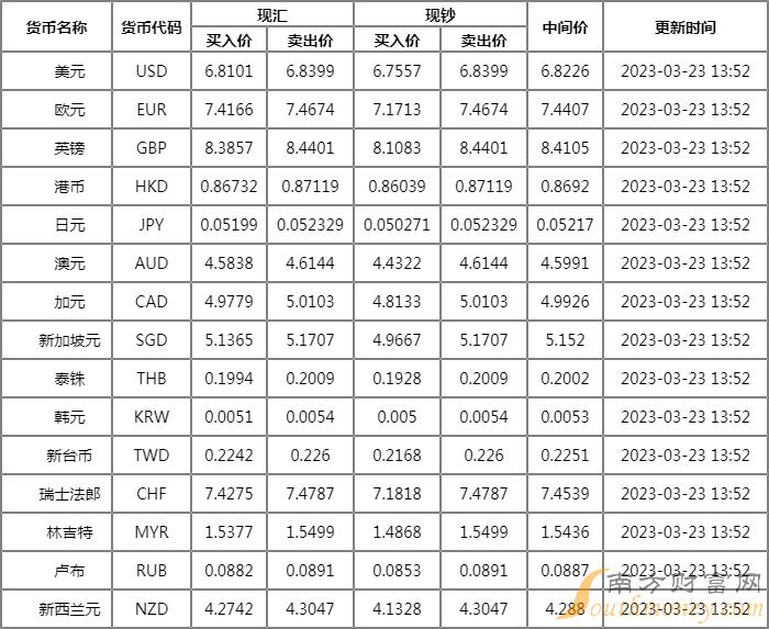 平安银行外汇牌价一览 3月23日平安银行人民币汇率多少?下面同南方财富网小释来看看。