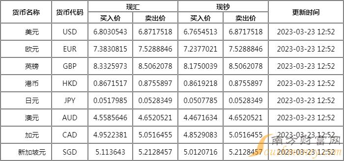 汇丰银行外汇牌价一览 3月23日汇丰银行人民币汇率多少?下面同南方财富网吾悟君来看看。