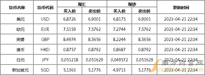 xm外汇:渤海银行外汇牌价2023年4月21日 人民币对美元汇率多少?