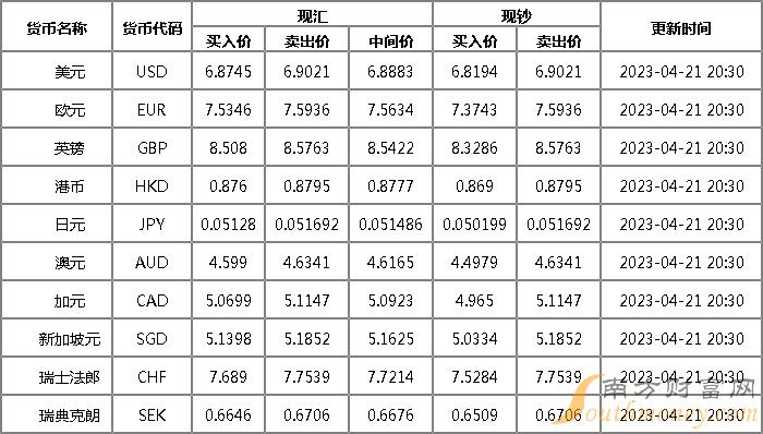 xm外汇:2023年4月21日华夏银行外汇牌价一览 人民币美元汇率多少?