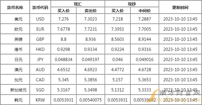 恒丰银行汇率牌价表2023年10月10日人民币今日汇率多少?2023年10月10日,人民币兑美元中间价上调8个基点,报7.1781。南方财富网畅想君来看看。