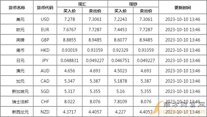 10月10日,人民币对美元中间价报7.1781,调升8个基点。前一交易日中间价报7.1789,人民币16:30收盘价报7.2922,夜盘收报7.2935。