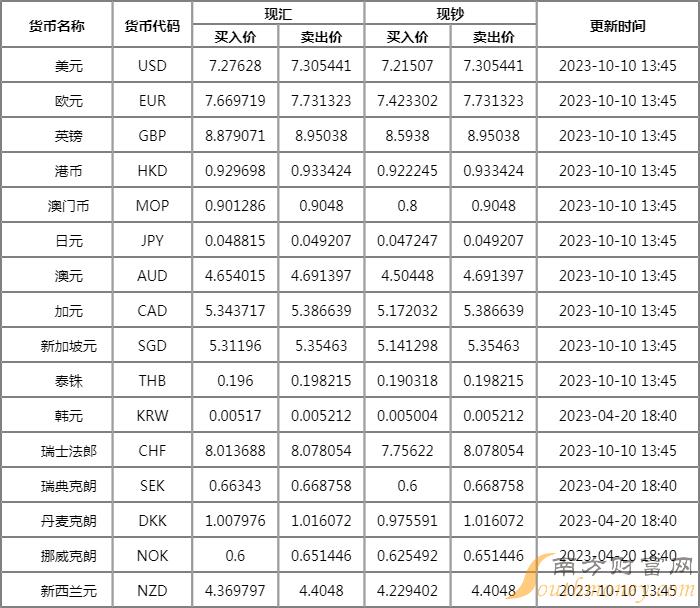 xm外汇:光大银行外汇汇率牌价表2023年10月10日人民币汇率多少?