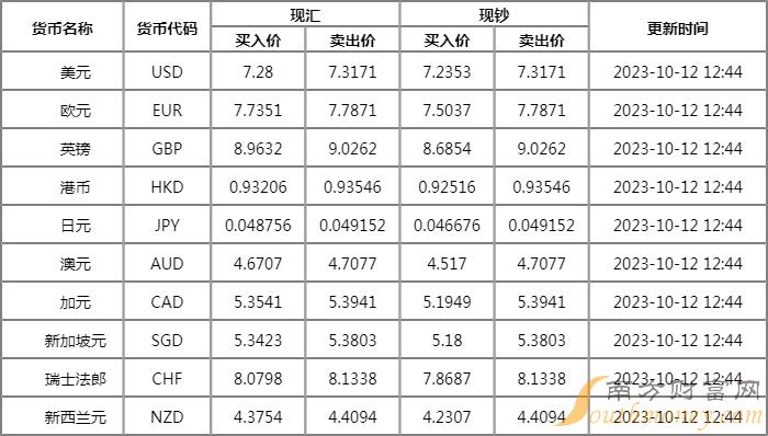 xm外汇:浙商银行汇率牌价表2023年 10月12日浙商银行美元汇率查询