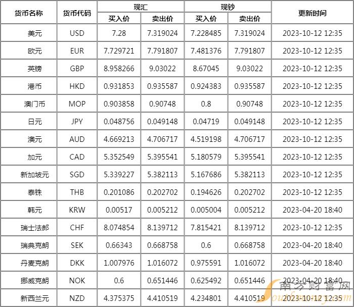 xm外汇:光大银行外汇牌价表2023 10月12日光大银行人民币汇率是多少?