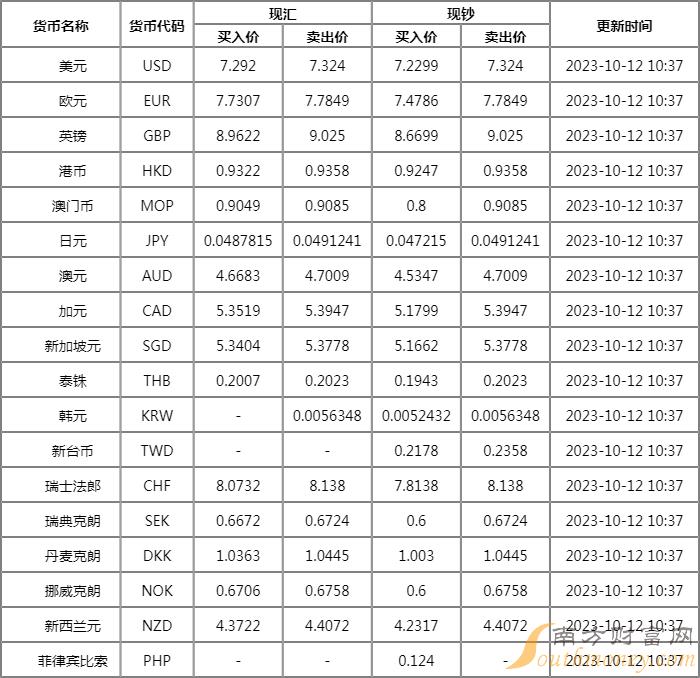 xm外汇:今日交通银行汇率牌价表一览2023年10月12日