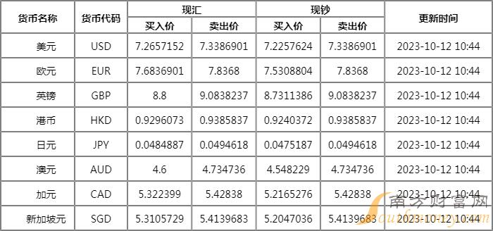 xm外汇:汇丰银行汇率牌价表一览10月12日 人民币对美元汇率是多少?