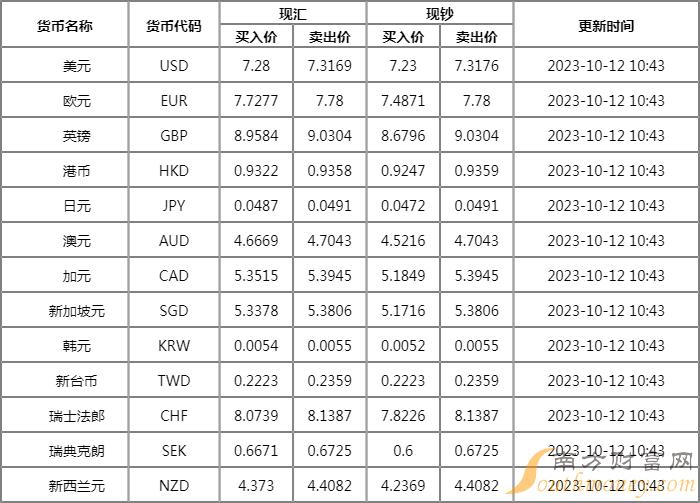 xm外汇:兴业银行汇率牌价表查询2023年 10月12日兴业银行人民币汇率多少?