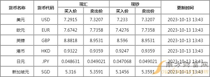 10月13日渤海银行外汇汇率牌价一览?今日人民币汇率中间价是多少?随南方财富网萧哥来看看。