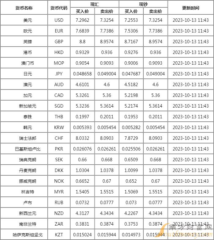 xm外汇:工商银行外汇汇率牌价一览10月13日 工行人民币汇率是多少?