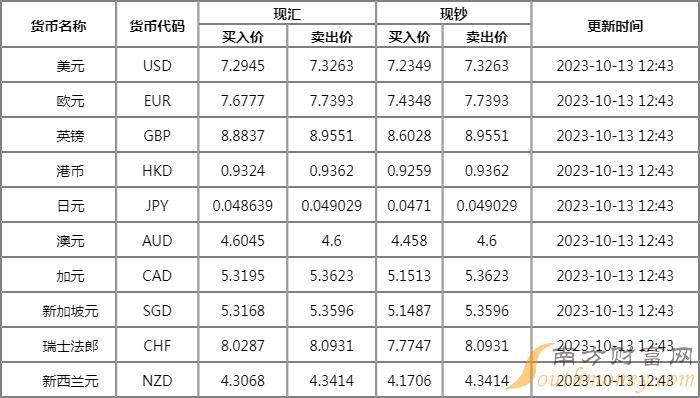 xm外汇:10月13日招商银行外汇汇率牌价一览 今日人民币汇率是多少?