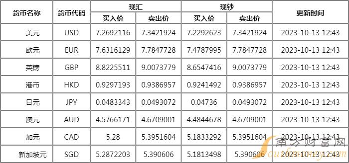 xm外汇:2023年10月13日汇丰银行外汇汇率牌价一览