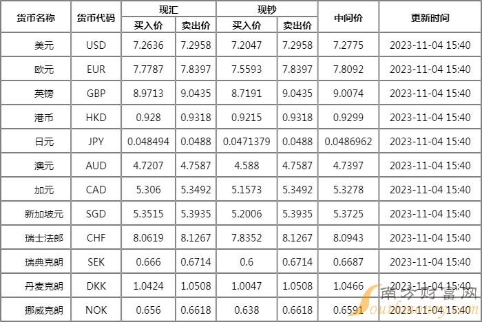 xm外汇:11月4日浦发银行外汇牌价表(人民币汇率是多少)