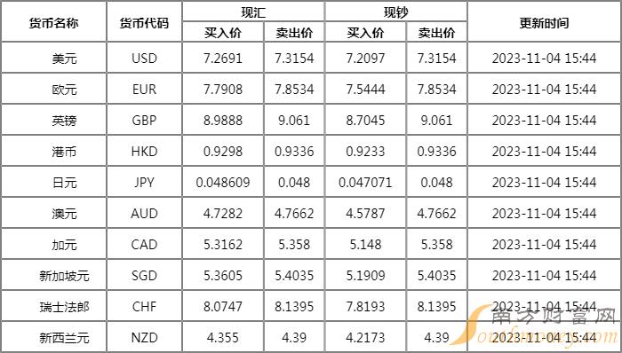 11月4日招商银行外汇牌价表,人民币对美元汇率是多少?随南方财富网李才君来看看。