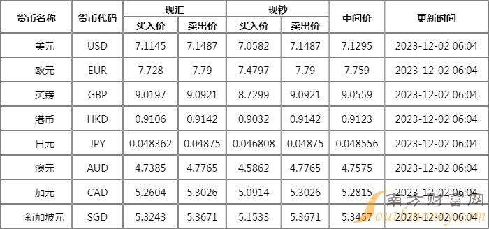 xm外汇:2023年上海农村商业银行外汇牌价一览 12月2日人民币汇率多少?