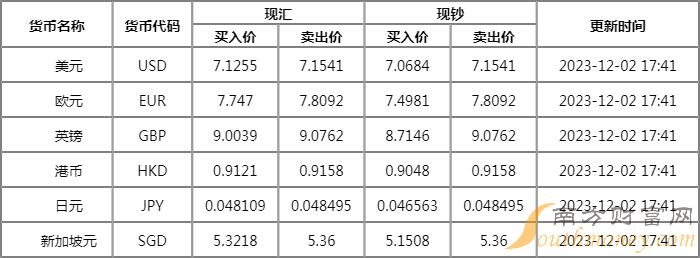 xm外汇:渤海银行汇率牌价表一览12月2日 人民币对美元汇率多少?