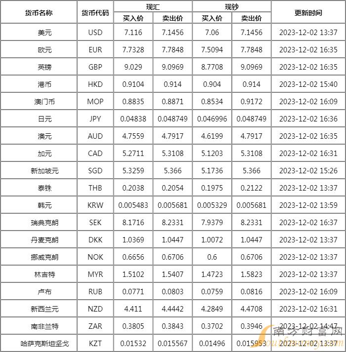 xm外汇:建设银行外汇牌价查询2023年 12月2日人民币汇率是多少?